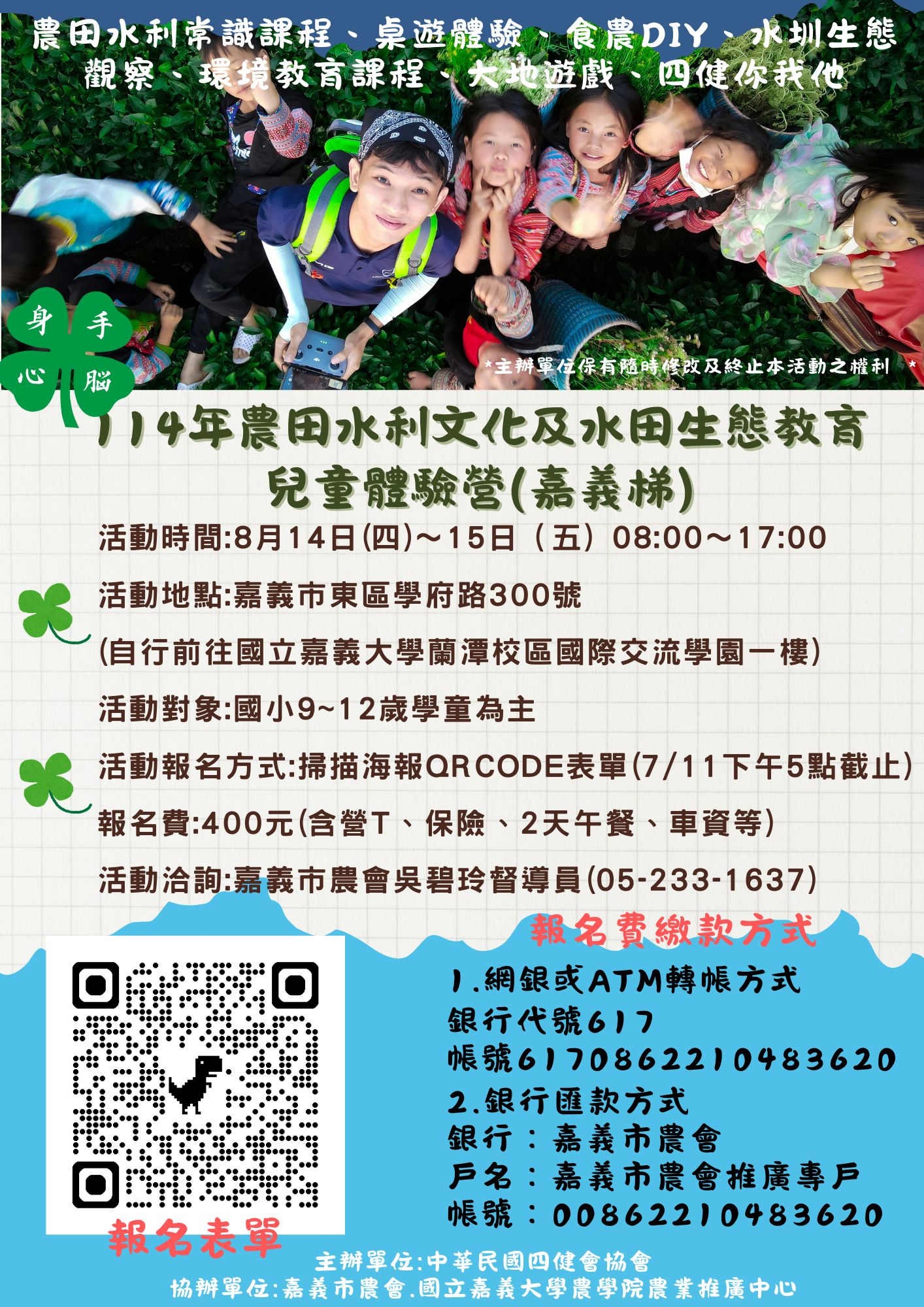 114年農田水利文化及水田生態教育兒童體驗營(嘉義梯)歡迎踴躍報名
