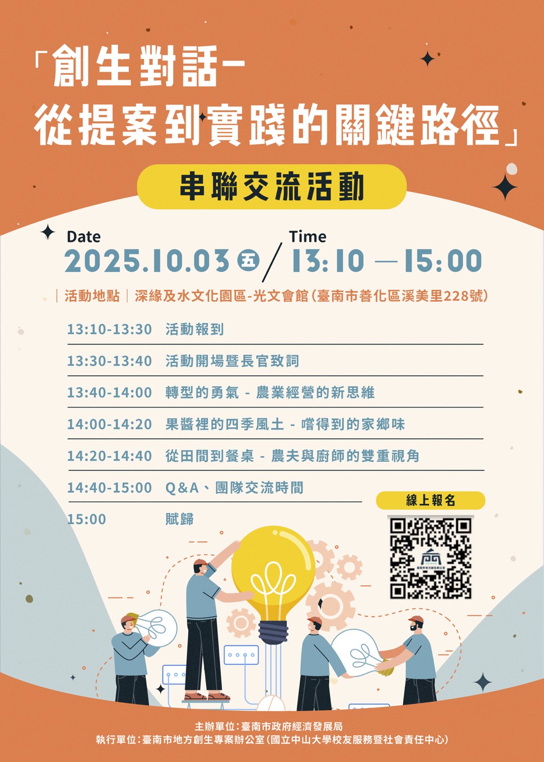 二、旨揭活動謹訂於114年10月3日13時10分假臺南市善化區深緣及水文化園區光文會館舉辦,報名網址: