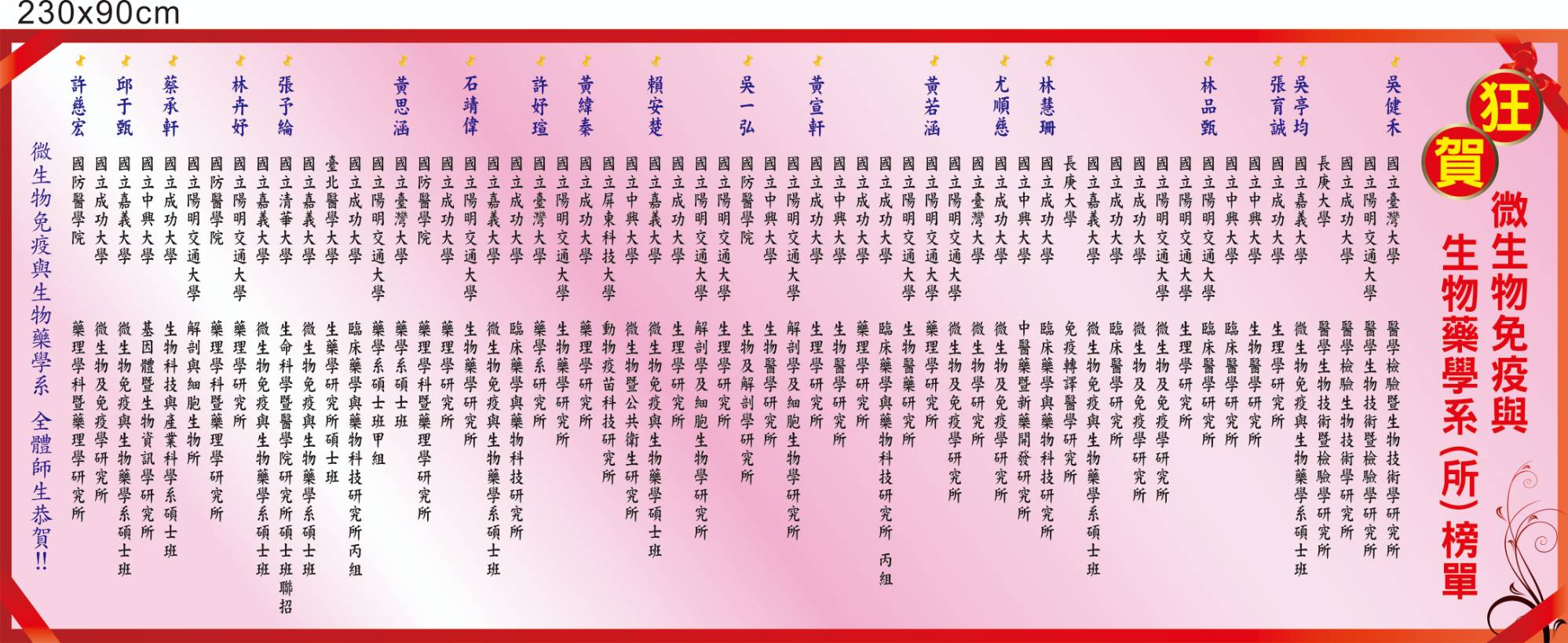| 2024/06/04 | 113級-微藥系 | 微生物免疫與生物藥學系 | |