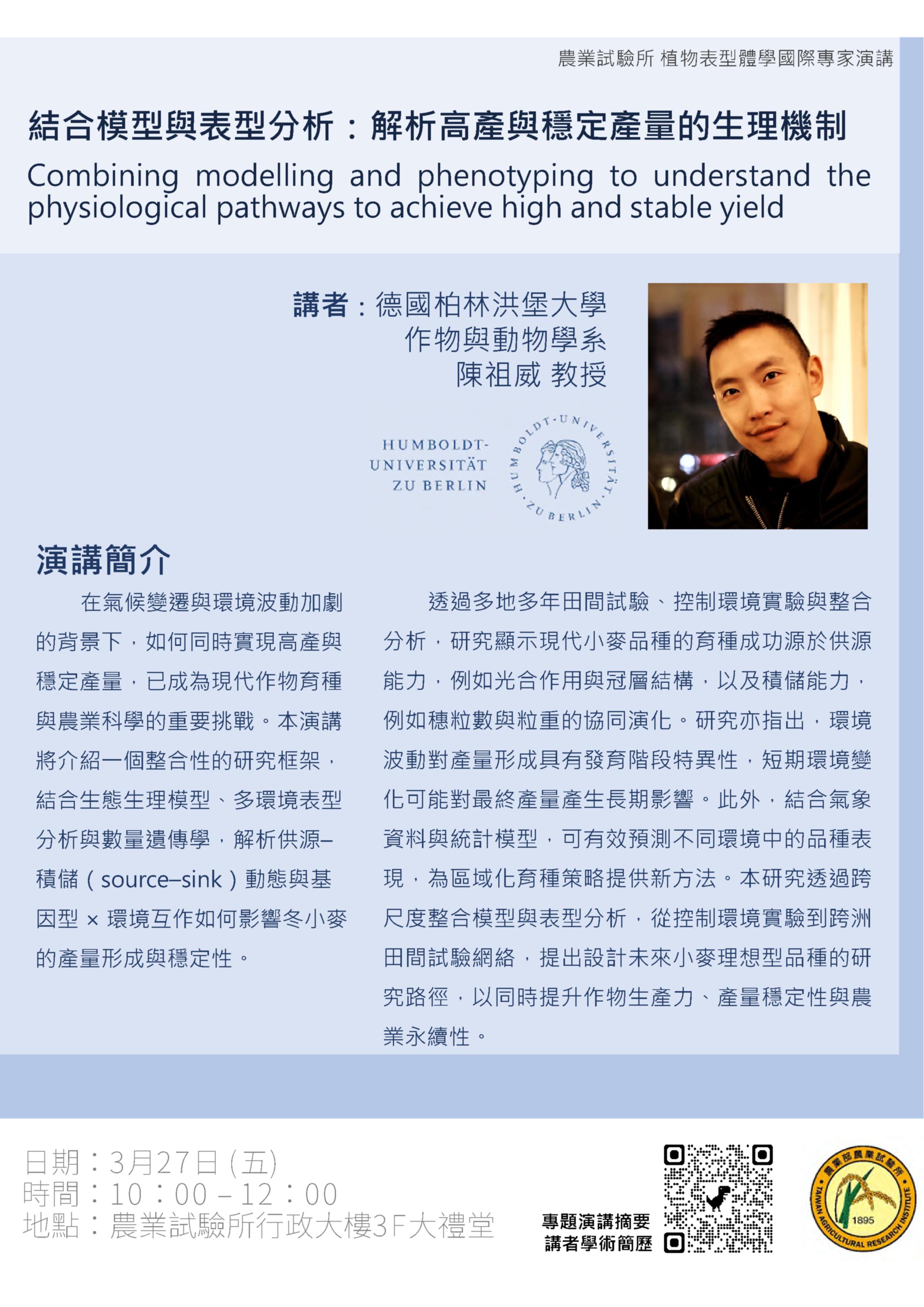 主旨:敬邀參加於本( 115) 年3月27日舉辦之「結合模型與表型分