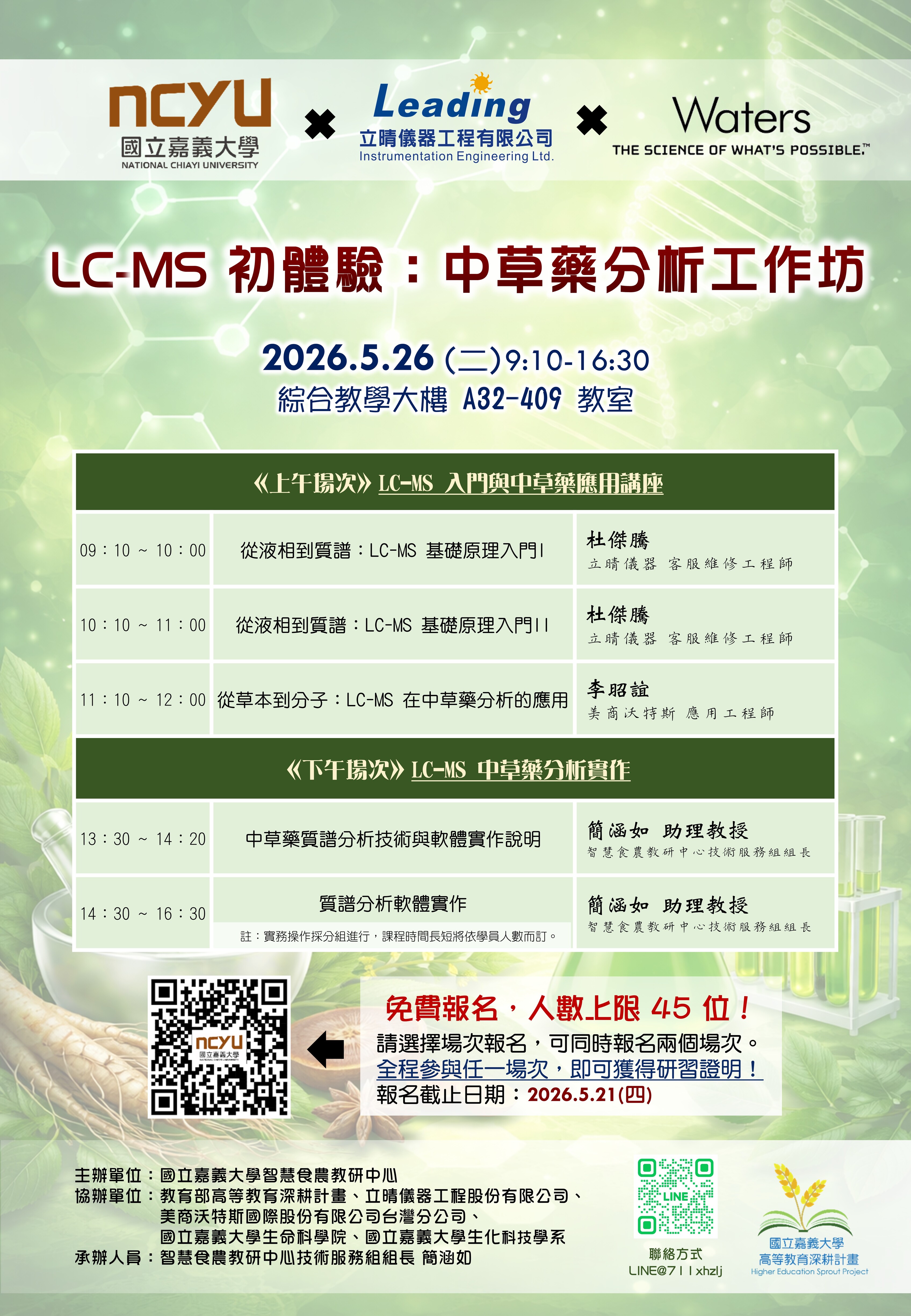 🌿【免費工作坊|LC-MS 初體驗】🔬 中草藥分析 × 質譜實作,一天搞懂!
