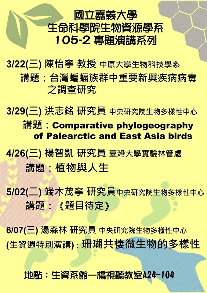 本系105學年度第2學期系列專題演講,請同學踴躍參加~
