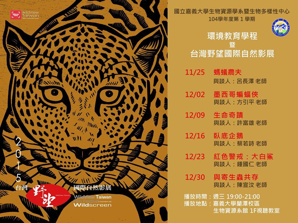 本系104學年度第1學期野望國際自然影展系列,請同學踴躍參加