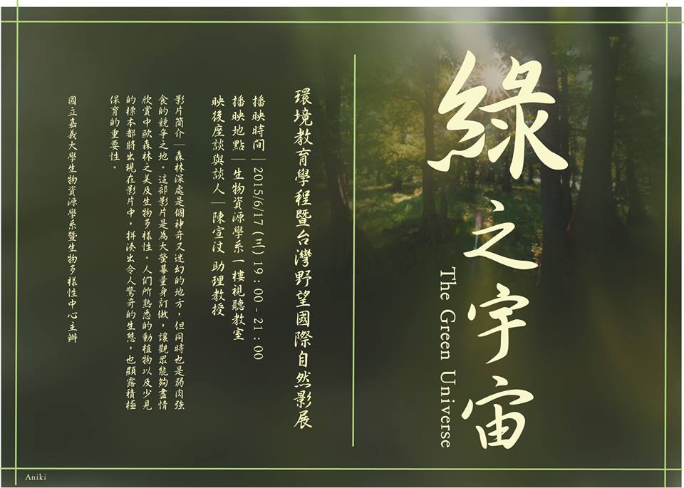 本系103學年度第2學期野望影展-6月17號「綠之宇宙」,請同學踴躍參加