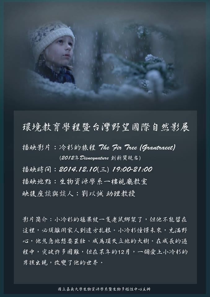 本系103學年度第1學期野望影展-12月10號「冷杉的旅程」,請同學踴躍參加