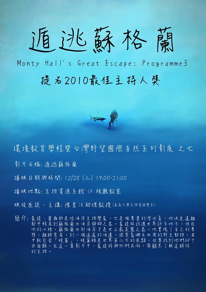 本系102學年度第1學期野望影展-12月25號「遁逃蘇格蘭」,請同學踴躍參加