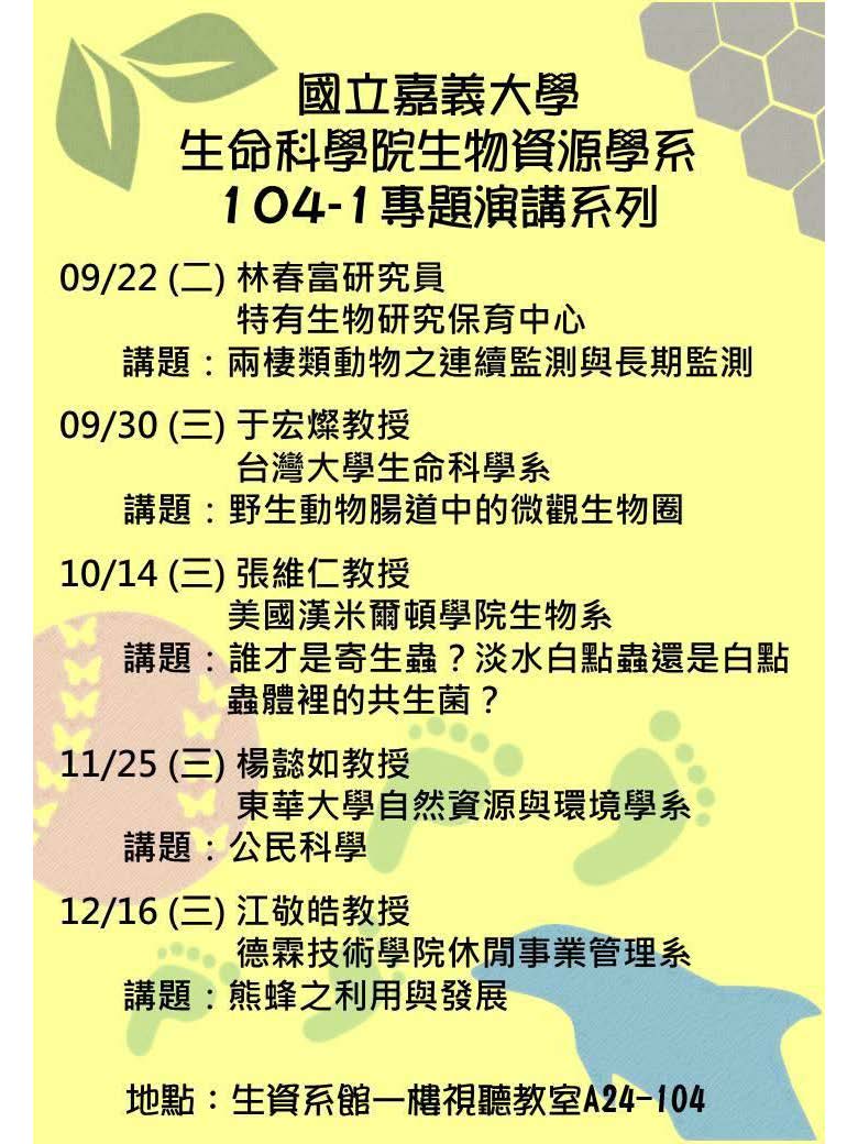 本系104學年度第1學期系列專題演講,請同學踴躍參加