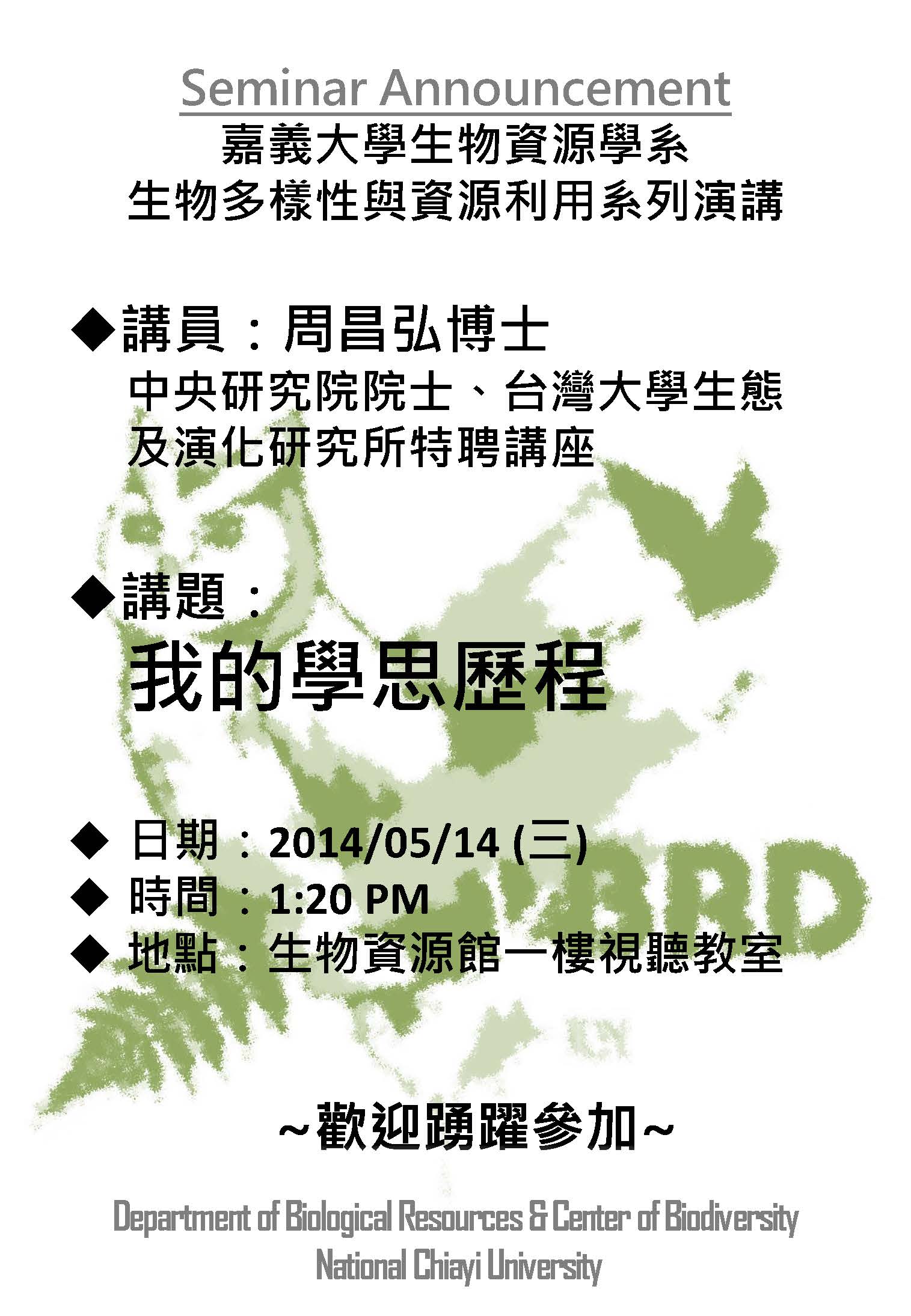 本系102學年度第2學期專題演講-5月14日「我的學思歷程」,請同學踴躍參加
