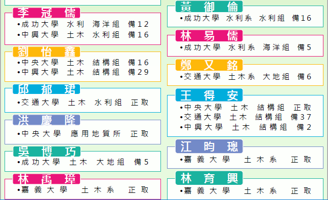 | 2018/07/14 | 106土木系研究所榜單(1) | 土木與水資源工程學系暨研究所 |
