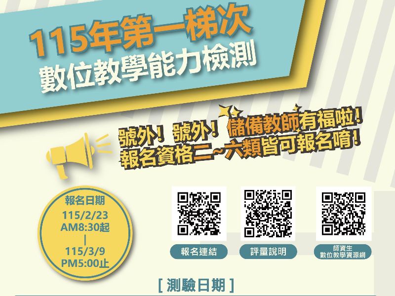 🔶此檢定為校內自辦,非等同於教育學程修習辦法第19條第四款之教育部數位教學能力檢定🔶
