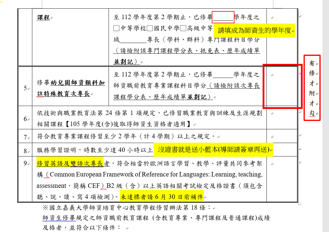 四、雙語師資生及中教英語領域專長同學須附英檢B2通過證明影本。