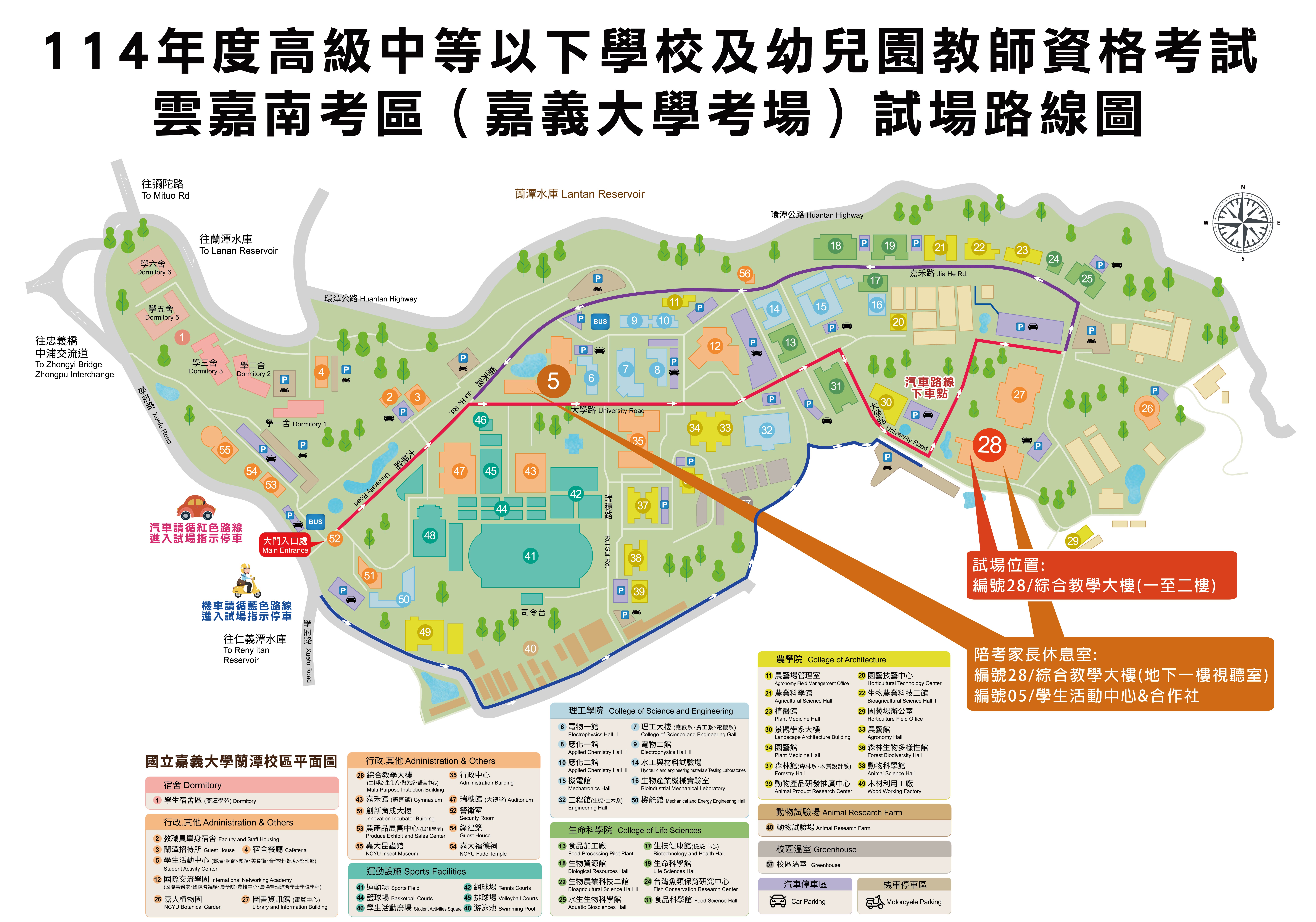 | 2025/05/12 | 師資培育中心 | 114年度高級中等以下學校及幼兒園教師資格考試 汽機車前往考場校內路線圖 | 師資培育中心 |