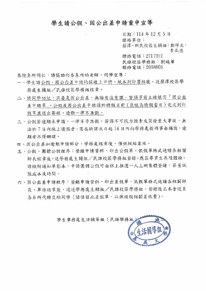 說明: 一、 講座內容: (一) 講座主題:「AI 與 EMI 教學助理的協作:實務技巧」AI Collaboration with EMI Teaching Assistants: Practical Tips (二) 主講人:嘉義大學特殊教育學系 江俊漢老師 (三) 日期與時間:114年12月16日(星期二)12時至13時。 (四) 講座語言:英文 二、 講座地點:民雄校區教育館(教室地點連同報名結果一併寄送通知)。 三、 報名網址:https://forms.gle/JEsiJCTyUDE28dwZ9 四、 報名日期:即日起至114年12月11日(星期四)23:59,為了瞭解用餐需求,請務必填寫報名表。 五、 講座當天提供午餐。 六、 檢送講座海報1份供參。