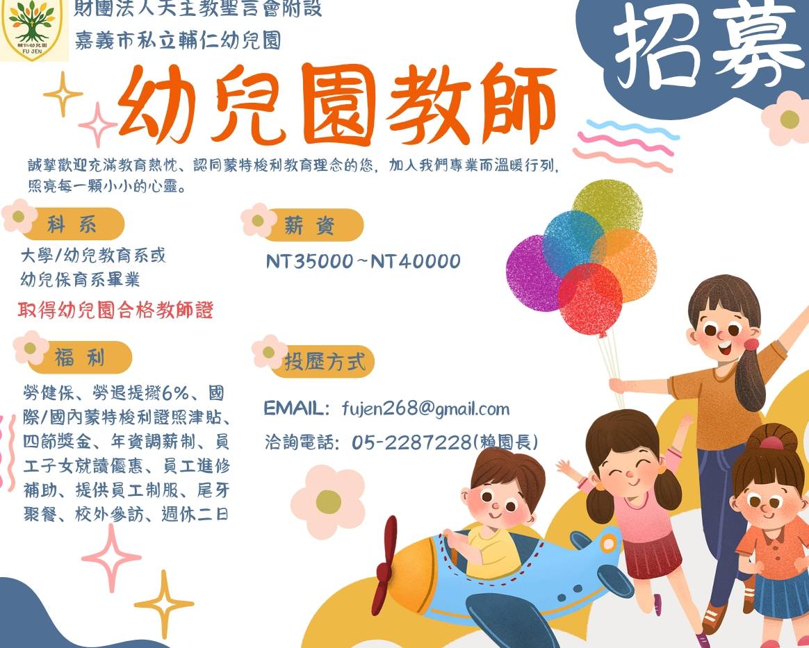 | 2025/08/07 | 嘉義市私立輔仁幼兒園徵才 | 幼兒教育學系暨研究所 | |