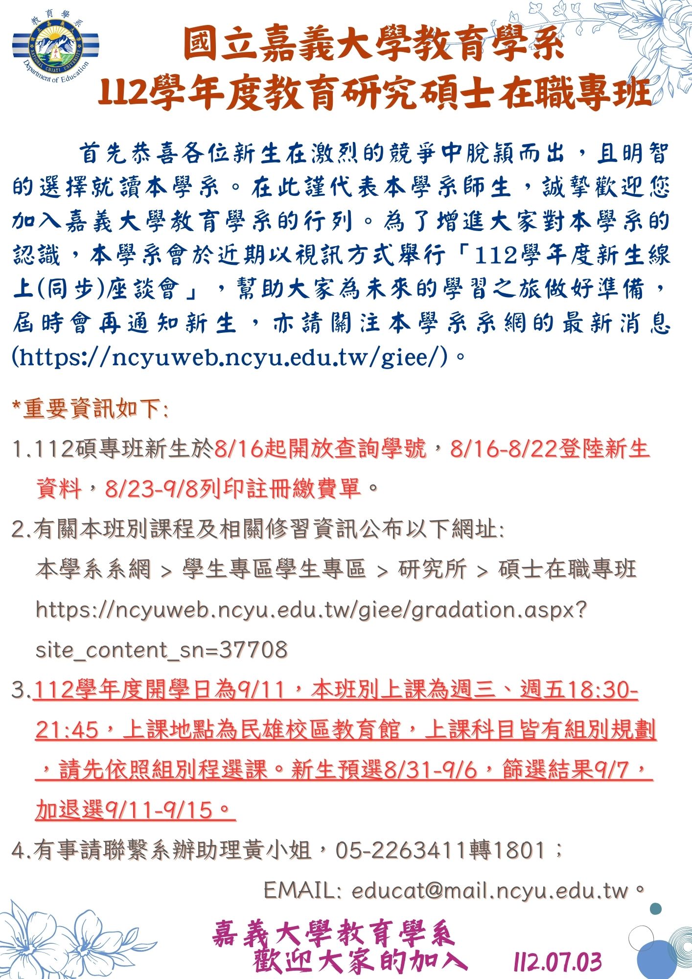 112 學年度教育研究碩士在職專班新生專區