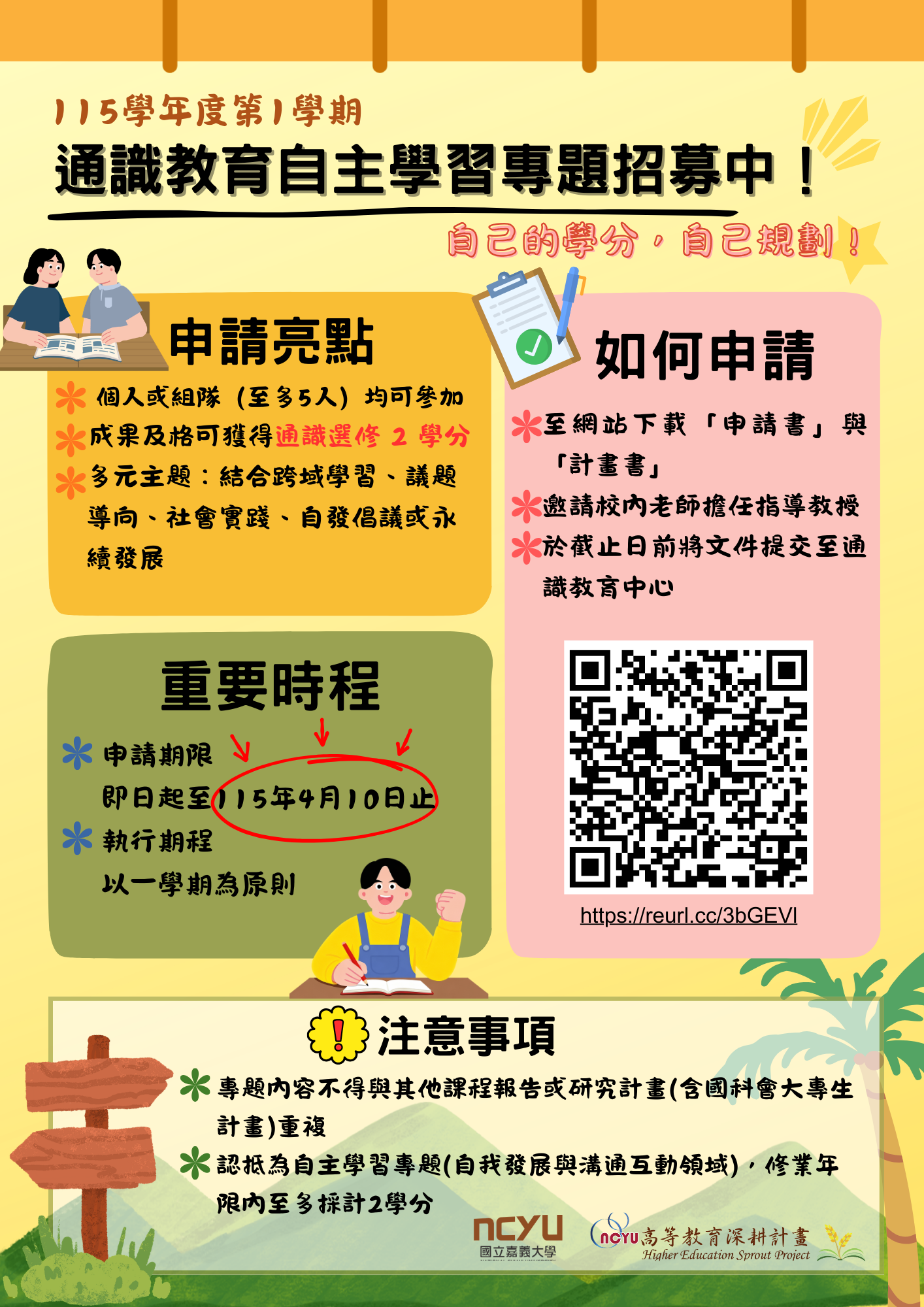(一) 申請期限:即日起至115年4月10日(星期五)止。
