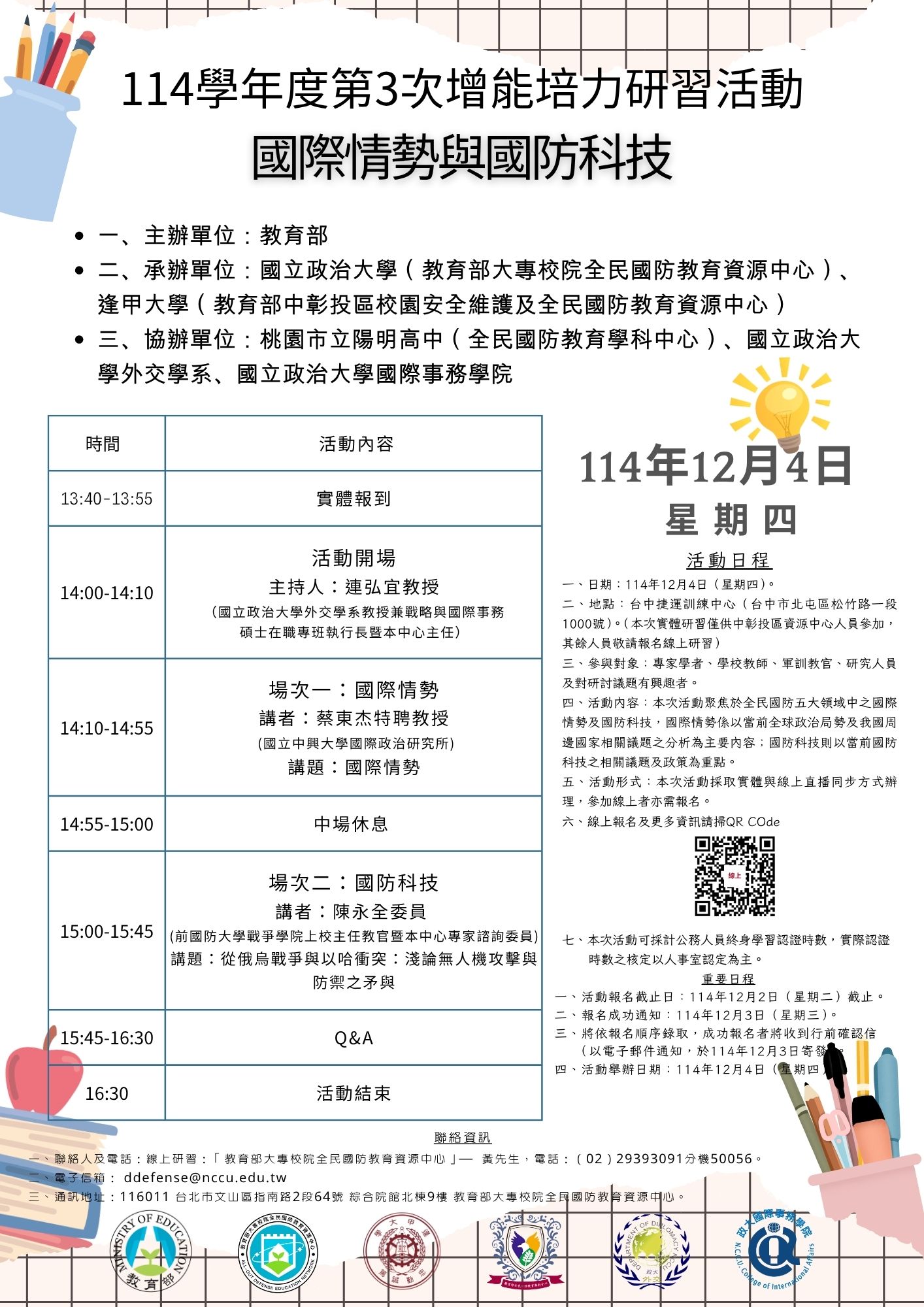 大專校院全民國防教育資源中心114學年度第3次增能培力研習活動