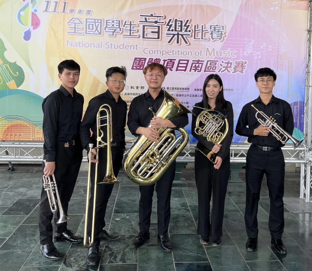 | 2023/03/13 | 賀!!嘉義大學音樂系銅管五重奏榮獲111學年度全國學生音樂比賽南區特優第一名 | 音樂學系 | |