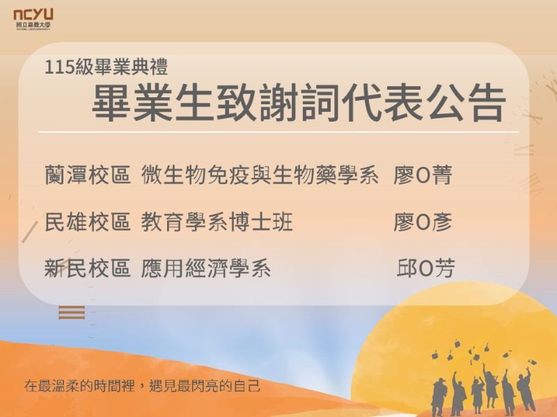 2026.04.11115學年度申請入學於3月31日公告通過第一階段篩選名單,嘉義大學為落實精準招生與全員招生策略,採主動出擊、積極關懷考生,11日下午1時30分同步於蘭潭、民雄與新民校區,舉辦線上與實體招生說明會,透過與考生、家長互動交流及校園實地體驗,了解嘉大豐富教研資源、學系特色與課程、學習生活環境及未來升學或就業規劃。 說明會由林翰謙校長開場,介紹嘉大為雲嘉地區歷史悠久、最具規模的綜合型大學與世界綠色大學,擁有師範學院、人文藝術學院、管理學院、農學院、理工學院、生命科學院及獸醫學院等7大學院、40個學系組、43個碩士班、7個博士班等學制,具備深厚的學術傳統和豐富的教育資源。嘉大積極鏈結產學雙向人才共育,推動產業需求驅動研究之學校企業協作新模式;透過創新教學精進及參與式實踐課程,建構學生自主學習階段性發展模型;持續深耕綠色安全節能減碳,打造智慧生活幸福永續校園;進階「嘉義巡禮」課程路線3.0,落實在地連結與跨域人文關懷;一系一院一國際化及嘉大10大國際化政策,讓學生畢業後能順利就業與職場無縫接軌。 接續由鄭青青教務長說明攸關考生入學後的學習資源與支持系統,包括從入學前暑期先修到碩士進修學習的無縫接軌,強調嘉大113-114學年度AI融入課程共2,346門課,運用領域遍布各學院,提供學生科技賦能與多元能力;引導學生探索學習資源,建構自主學習環境與跨域跨校學習平台;學習支持包含打造數位學習場域,提供多元就學獎助學金與學習獎勵金,作為經濟及文化不利學生的強大後盾;生活支持推出宜居校園概念,全新完工之新民校區賢德樓宿舍與其他校區宿舍硬體翻新,提供大一保障住宿;校園內設UBike 2.0站點與縣市公車直達,升級生活機能;學校全方位師資培育、透過產學研發串接學生創業創新等,藉由簡報讓與會者對嘉大有更進一步的了解。簡報結束後,接續由各學院進行考生及家長面對面互動,介紹所屬學系特色、專業師資、教學設備及升學與就業發展等,並邀集所屬學系師長面對面提供考生與家長詳盡的諮詢服務,引導準大學新鮮人聚焦未來發展。 嘉大表示,自112學年度起已連續四年針對個人申請第一階段通過的考生,採主動出擊、積極關懷,邀請全臺高中生及家長來到嘉大,今年更首度透過投入千萬打造的數位互動探索教室線上直播,嘉大積極打造先進數位學習場域,近年亦積極回應AI發展趨勢與高教轉型需求,持續強化課程特色、行政支持與學生照顧機制。招生說明會不僅是升學資訊的傳遞平台,也讓學生及家長能更具體地認識嘉大的辦學理念、學習制度與生活支持,進一步作為升學選擇的重要參考。 本次說明會共計 487 人報名,參與線上直播人數高達360人,出席實體說明會人數為143人(含師範學院21人、人文藝術學院16人、管理學院20人、農學院28人、理工學院24人、生命科學院26人、獸醫學院8人)。此次招生說明會,讓學生與家長實地感受校園氛圍,掌握申請入學關鍵資訊,並更清楚看見自己未來在大學階段的發展方向。嘉大誠摯歡迎您來「嘉」一同規劃大學藍圖。 圖1:嘉大舉辦115學年度申請入學招生說明會,吸引考生與家長踴躍參與。(照片由秘書室公關組提供) 圖2:林翰謙校長於招生說明會開場致詞,介紹嘉大辦學特色與發展亮點。(照片由秘書室公關組提供) 圖3:嘉大各行政單位師長於分場次與考生及家長互動交流,展現全員招生行動力。(照片由秘書室公關組提供) 圖4:鄭青青教務長說明學習資源、支持系統及入學後多元發展機會。(照片由秘書室公關組提供) 圖5:師範學院協助考生深入了解教育學系課程特色與發展方向。(照片由師範學院提供) 圖6:主場次結合線上互動機制,便利考生與家長同步參與招生說明會—人文藝術學院場次。(照片由人文藝術學院提供) 圖7:主場次結合線上互動機制,便利考生與家長同步參與招生說明會—管理學院場次。(照片由管理學院提供) 圖8:考生於農學院招生說明場次詢問有關未來AI設計與程式技術在農業領域之應用發展。(照片由農學院提供) 圖9:主場次結合線上互動機制,便利考生與家長同步參與招生說明會—理工學院場次。(照片由秘書室公關組提供) 圖10:生命科學院水生系吳淑美主任回應家長關於公費生招生問題。(照片由生命科學院提供)