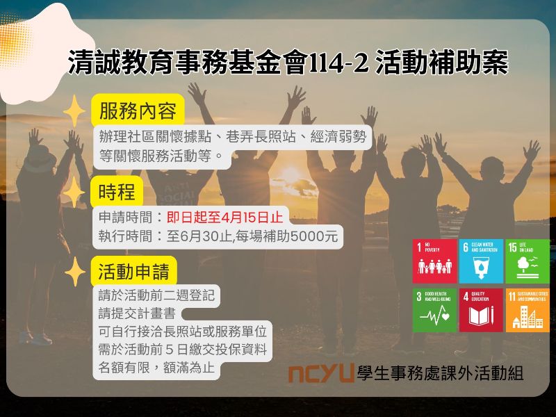 2026.02.10財團法人國際合作發展基金會2月4日舉辦第七屆「大專青年海外技術協助服務計畫」海外實習生、實習志工及實習華語教師聯合實習成果分享會,共有28位大專學生完成為期5個月的海外實習,其中嘉義大學即占6位,成果卓著。 嘉大自108學年度起與國合會共同辦理「大專青年海外技術協助服務計畫」,提供在學學生前往國合會派駐我國各友邦及友好國家之技術團參與技術協助服務,並推動產學合作與交流事宜已邁入第七年,結合校訂選修「專業校外實習」課程,每年舉辦海外實習說明會,鼓勵在校學生踴躍申請海外實習計畫。114學年度嘉大參與海外實習學生人數6人,包括農場管理進修學士學位學程吳君柔(帛琉)、洪鳳茹(聖文森)、水生生物科學系吳柔瑱(帛琉)、徐予娟(帛琉)、動物科學系張詩筠(聖克里斯多福及尼維斯)及資訊管理學系蔡沛蓉(聖文森),在成果分享會中分享駐地專業技能培養與參與援外事務的獨特經驗,同學皆表示可運用在校所學學以致用,更讓他們了解臺灣在國際合作中的角色,是實踐夢想的絕佳機會,也是一生難得的回憶。 國合會主要以協助友好或開發中國家經濟、社會、人力資源發展、增進經濟關係、提供遭受天然災害國家或國際難民人道協助等工作。國合會李志宏副秘書長致詞表示,很開心看到同學們運用所學,參與臺灣援外工作,在國外展現青年外交實力,掌握世界的臺灣。國合會史立軍副秘書長、外交部代表國際合作及經貿事務司陳明杰科長,也對於各位同學在國外實習期間的過程及成果給予肯定,希望同學們在畢業後亦能投入援外工作,一起推動臺灣在國際上的能見度。 這次成果分享會展現國合會致力於青年培力的具體成果,以及臺灣在國際合作中的價值與影響力。此次海外實習,嘉大6位同學充分開展臺灣青年在國際舞台上推動合作、增進友誼的能力與熱情,同時也汲取寶貴的海外實習經驗,深化課業的學習,並擴大未來職涯無限的可能性。嘉大將持續與國合會合作推動「大專青年海外技術協助服務計畫」,讓青年學子有機會到海外服務學習、實現夢想。 圖1:嘉義大學參與國合會海外技術協助服務計畫海外實習同學合影。(照片由教務處提供) 圖2:國合會海外技術協助服務計畫聯合實習成果分享會與會貴賓及全體海外實習同學合影。(照片由教務處提供)