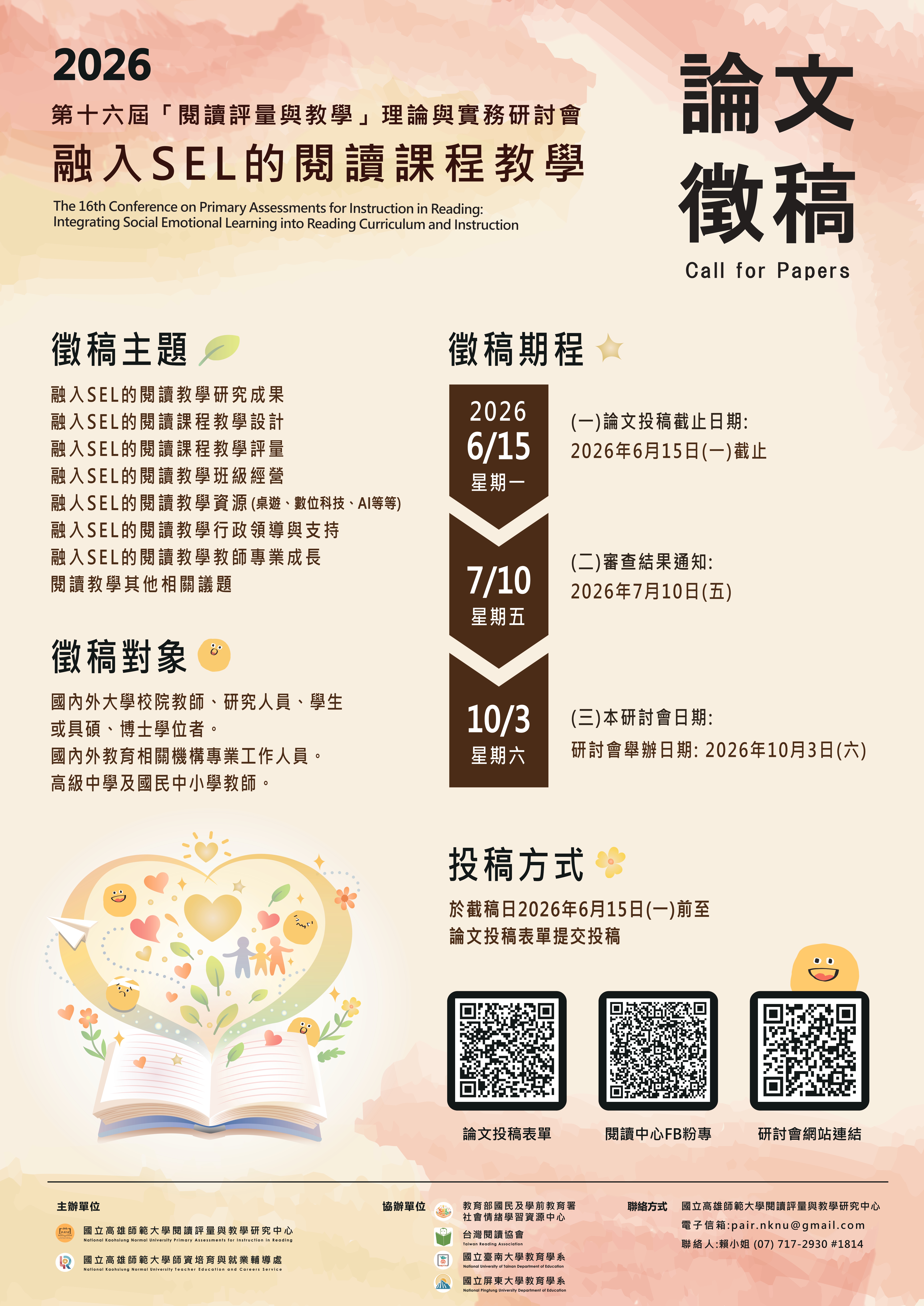 【轉知】國立高雄師範大學-2026年融入SEL的閱讀課程教學論文徵稿