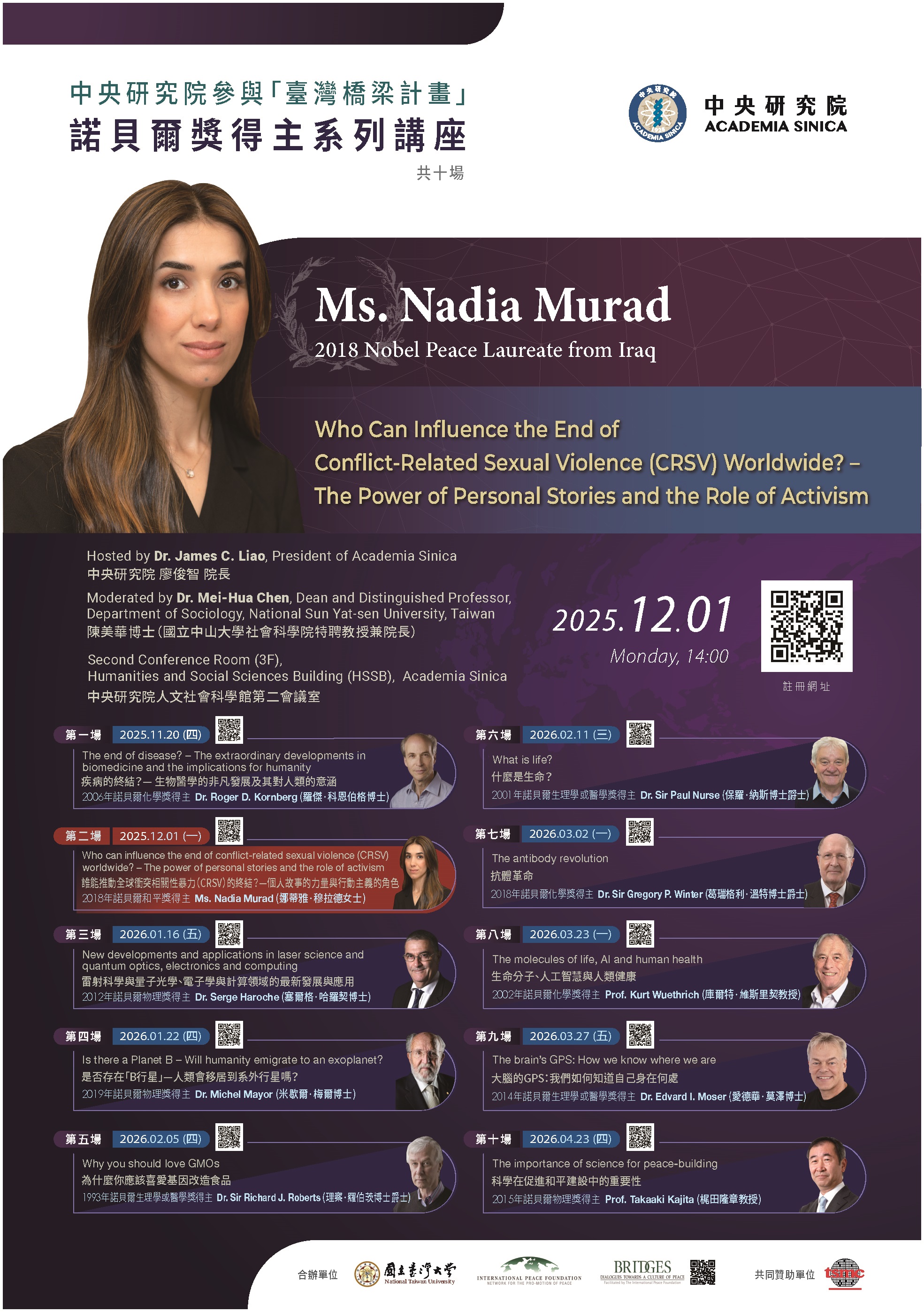 【轉知】中研院將於114年12月1日邀請諾貝爾和平獎得主娜蒂雅.穆拉德女士演講,歡迎報名參加。