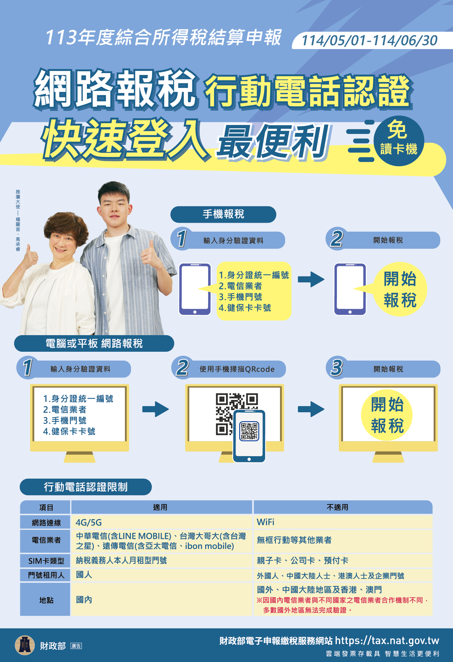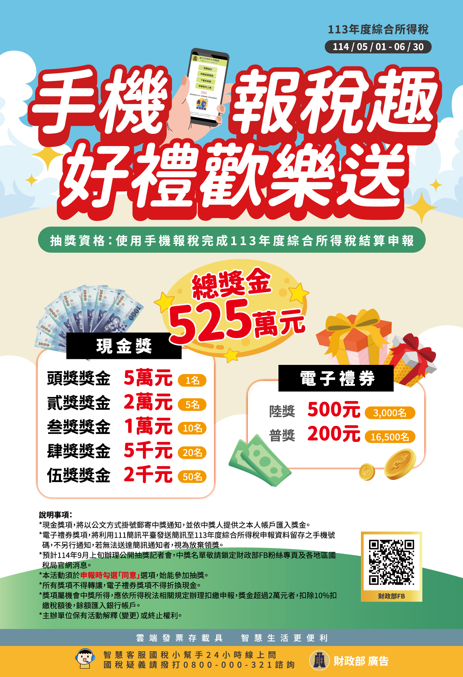 為使民眾順利完成113年度綜合所得稅申報,並鼓勵使用手機報稅參加財政部舉辦「手機報稅趣 好禮歡樂送」活動,