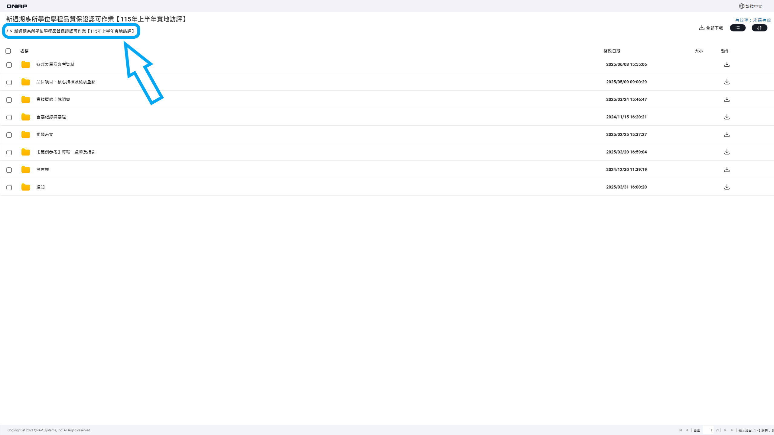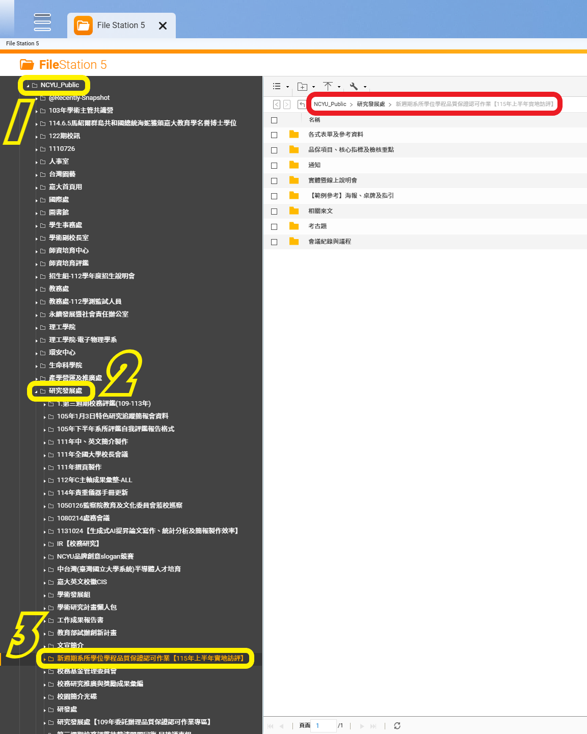 六、檢送各學院協調督導受評單位辦理進度調查表、品保認可作業實施計畫、各式表單及參考資料如下表,或逕至雲端硬碟資料共存區【本校雲端硬碟→NCYU_Public→研究發展處→新週期系所學位學程品質保證認可作業【115年上半年實地訪評】(https://webhd.ncyu.edu.tw/share.cgi?ssid=16624d8f56f94fb298be8047198afccf)】下載參用。