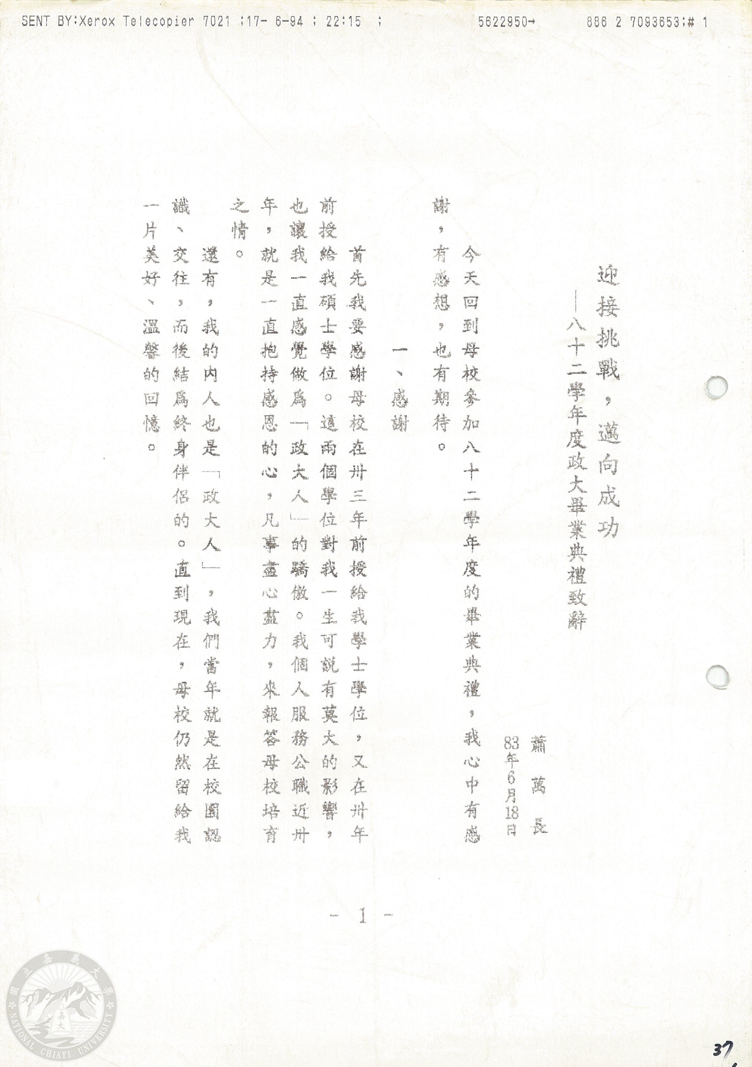 迎接挑戰,邁向成功─八十二學年度政大畢業典禮致辭 |
