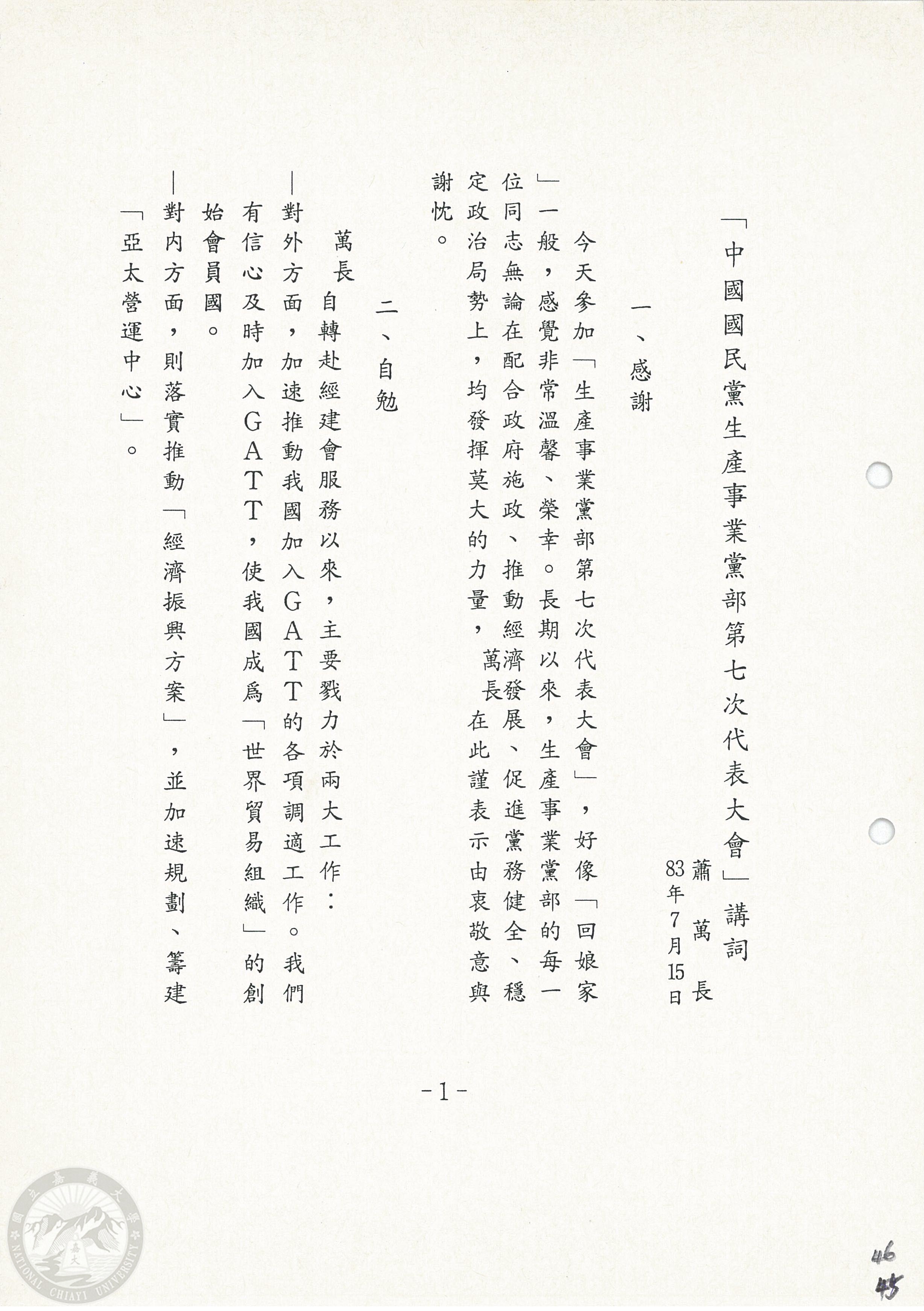 中國國民黨生產事業黨部第七次代表大會講詞 |