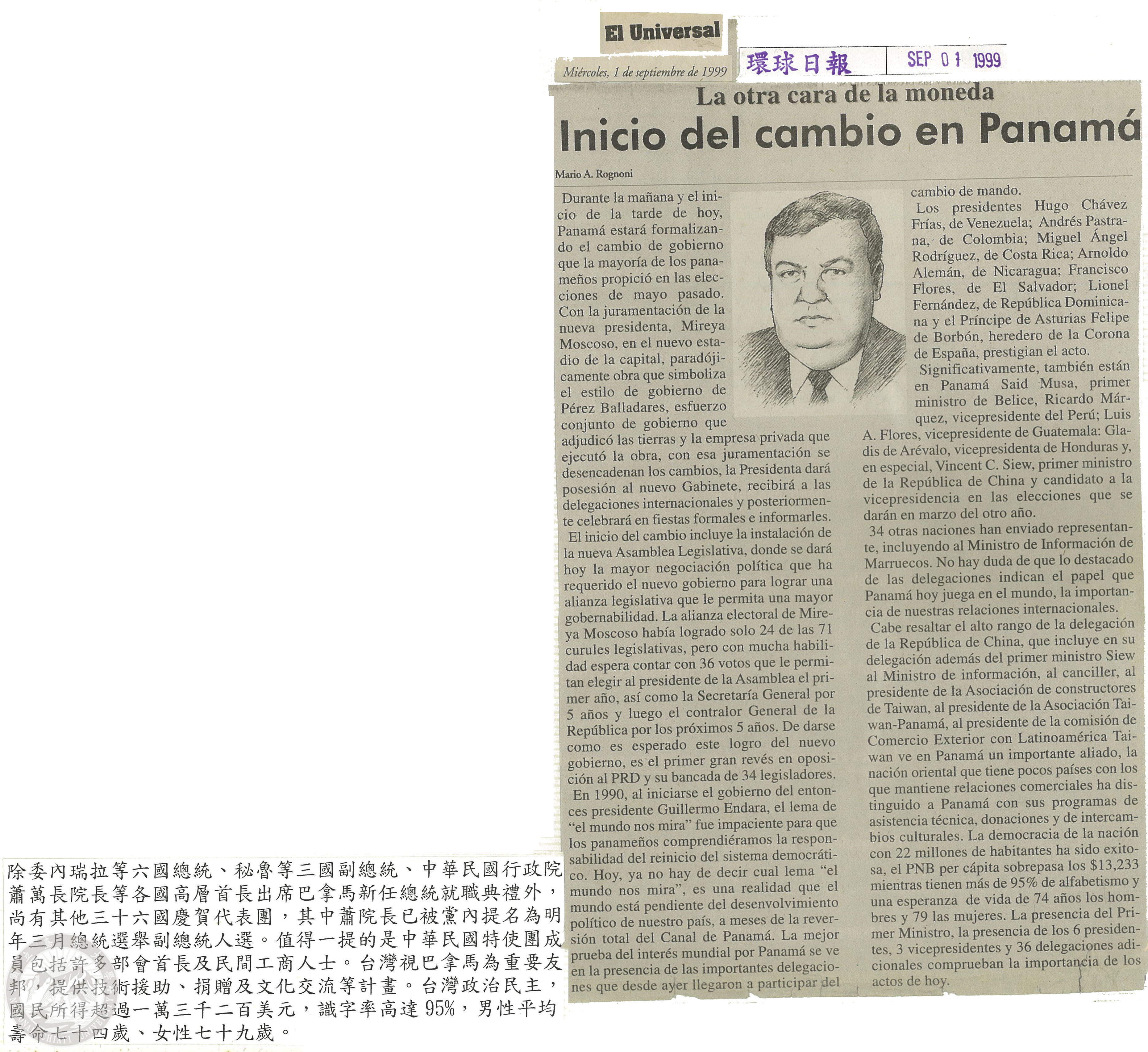 中華民國行政院蕭院長伉儷率特使團慶賀巴拿馬新任總統莫斯柯索(Mireya Moscoso)就職典禮相關報導剪報專輯 |