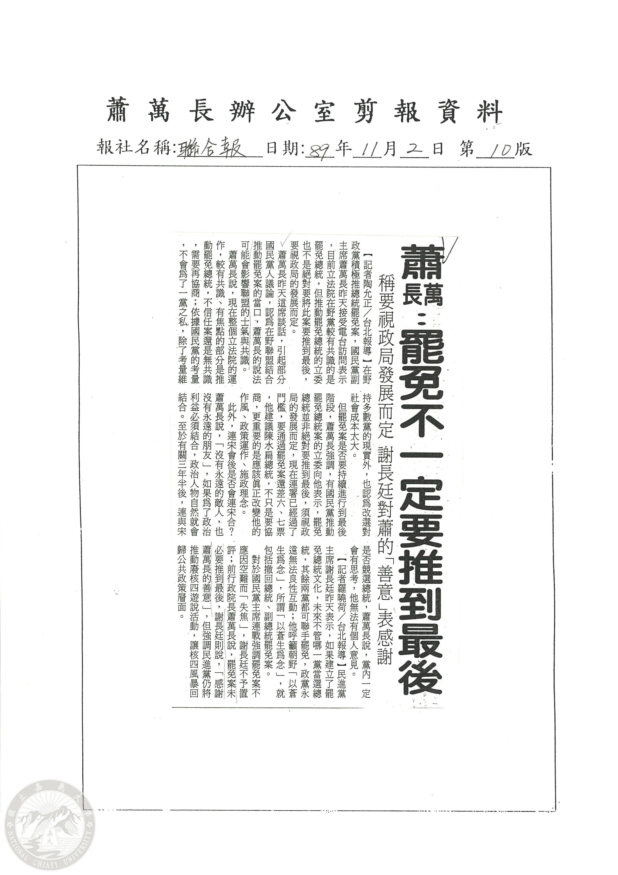 稱要視政局發展而定,謝長廷對蕭的「善意」表感謝 |